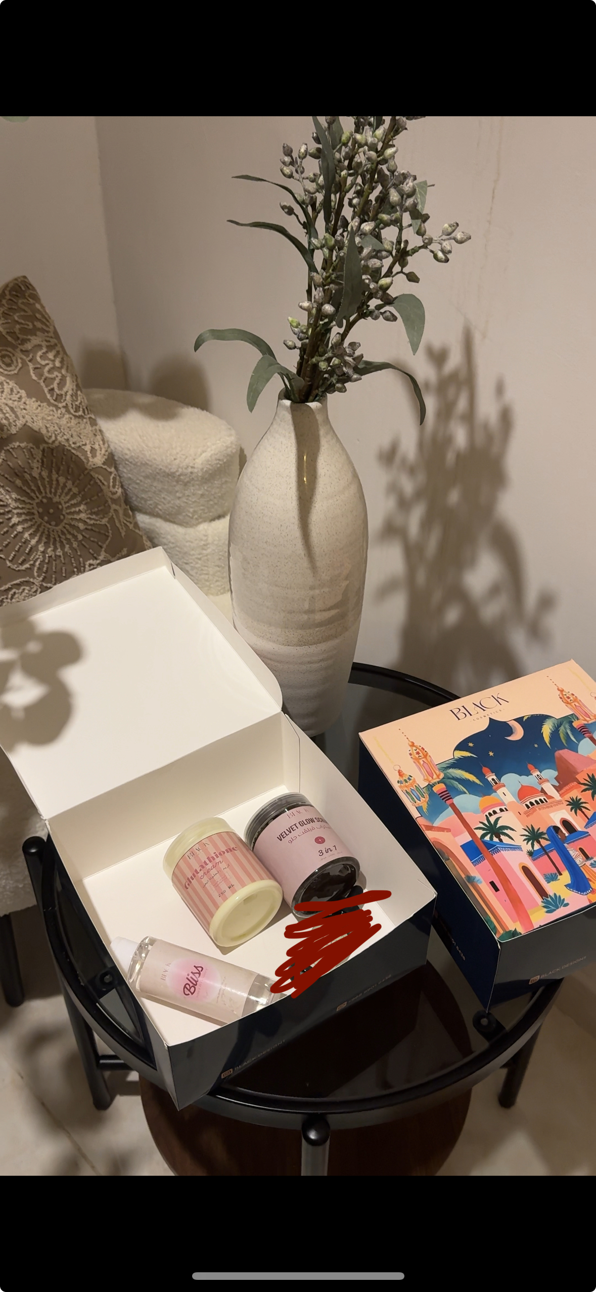 يحتوي على سكراب ڤلڤت جلو وسيروم تراي سي و كريم الجلوتاثيون للتفتيح و تونر بلِس